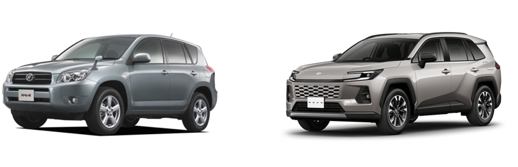 SUVの代表として、トヨタのRAV4を調べてみました。RAV4の初代は1994年の登場で、さすがに比較対象とするには時代が離れているので2005年登場の3代目から比較していきます。